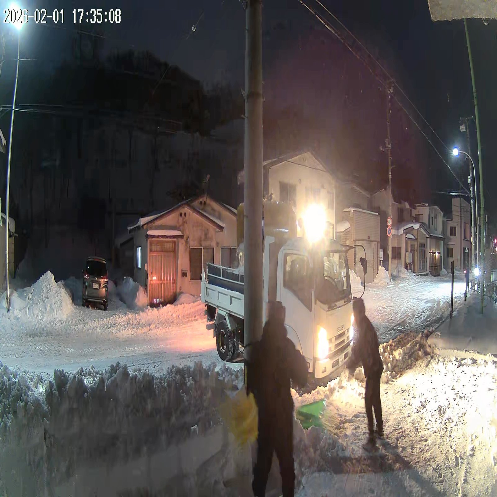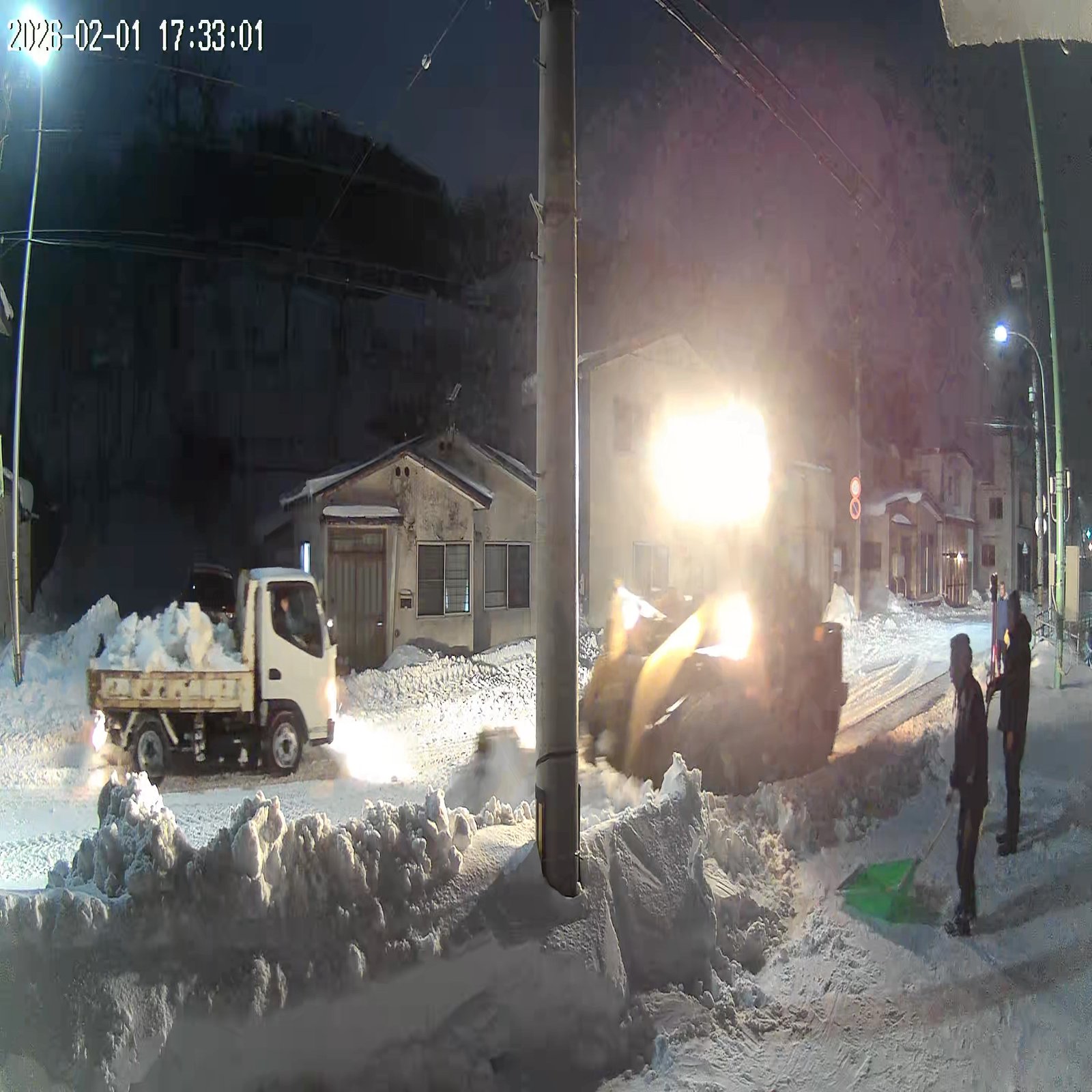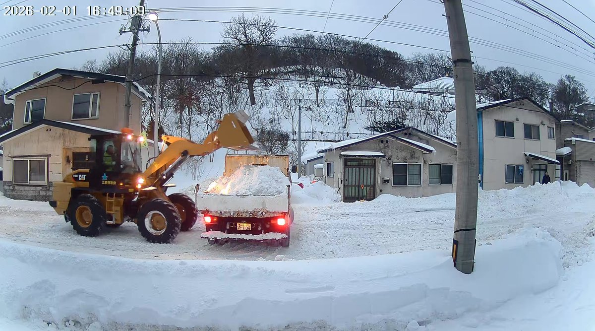 排雪作業積込中しかし、もう17時近いので、多分今日は片側だけだろうと思っていましたが、自宅側も始まった!すでに17時33分